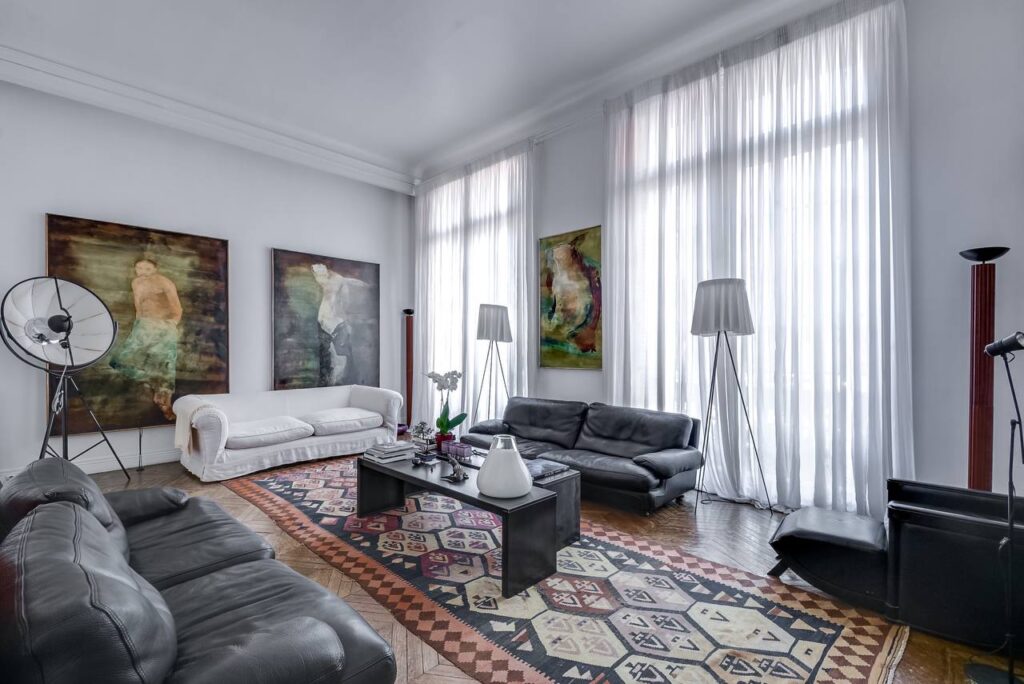 Апартамент полностью оборудован и готов к заселению, предлагая изысканную и функциональную обстановку. С шестью просторными помещениями этот трёхуровневый объект сочетает парижский шарм с современным комфортом, находясь в одном из самых престижных районов Парижа.